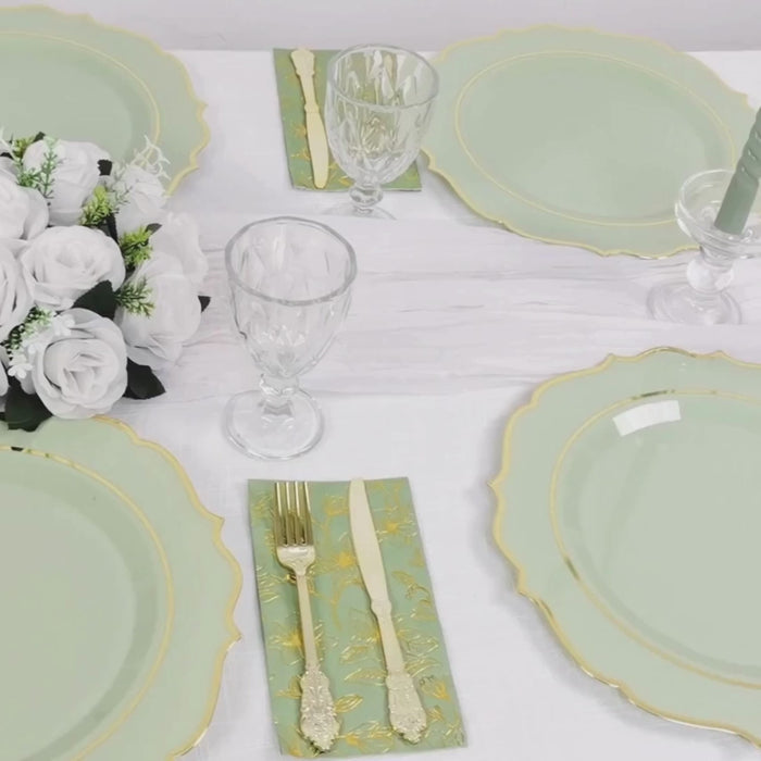 Stunning Sage Green Plastic Charger Plates with a Gold Scalloped Rim