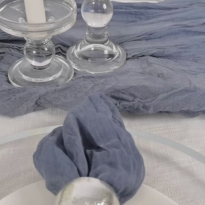 Our Dusty Blue Gauze Napkins are not just limited to weddings and parties. They are perfect for any event or gathering where you want to create a stylish and inviting atmosphere. Whether you're hosting a casual brunch, a garden dinner, or a cozy kitchen table gathering, these napkins will elevate your table decor with their boho charm.