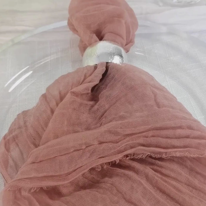 Looking for the perfect napkins to complement your event décor? Look no further than our Dusty Rose Gauze Cheesecloth Napkins. With their boho chic vibe and versatile color, they are the ideal choice for weddings, parties, and other special occasions.
