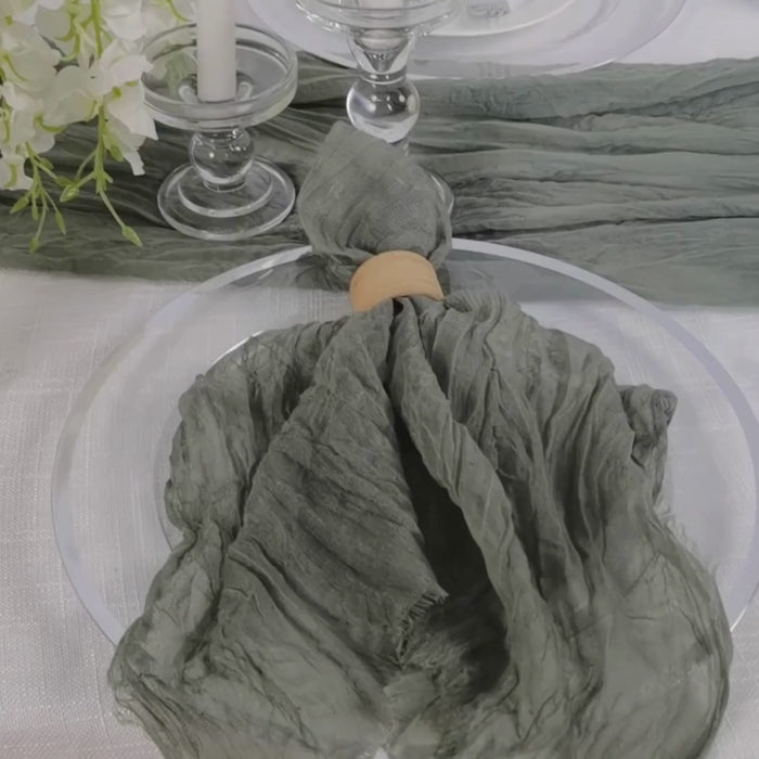 Introducing our 5 Pack Dusty Sage Green Gauze Cheesecloth Boho Dinner Napkins, the perfect addition to your event decor. These napkins are crafted from premium cotton linen gauze fabric, giving them a natural wrinkled texture and a smooth feel. Not only do they provide a comfortable dining experience for your guests, but they also bring in bohemian beauty and rustic flair to your place setting.